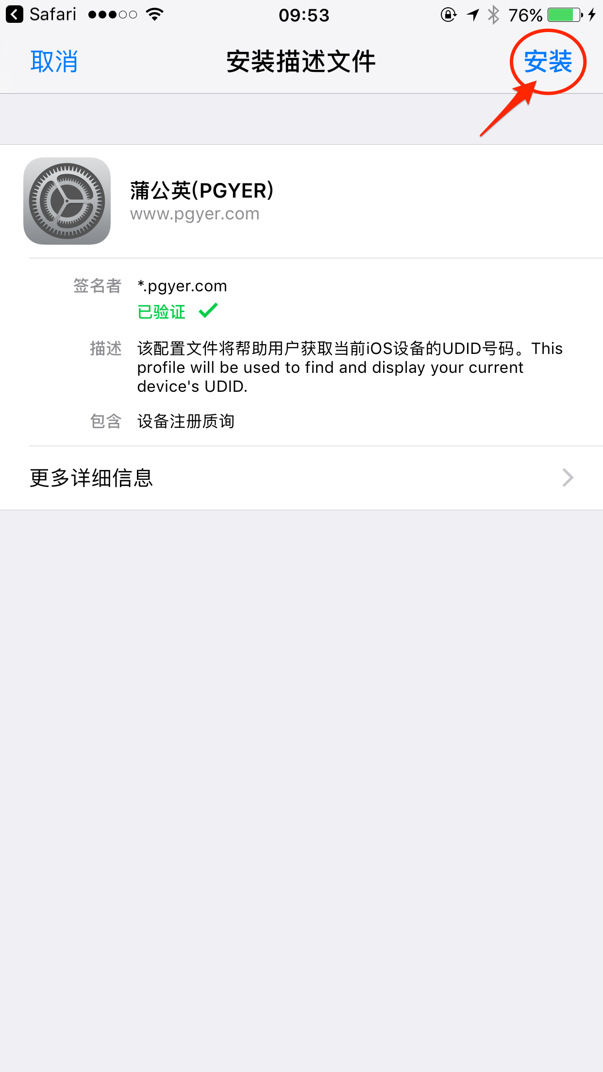 或者,您也可以在 iOS 设备上打开下面的地址,即可方便的获取到当前设备的 UDID。